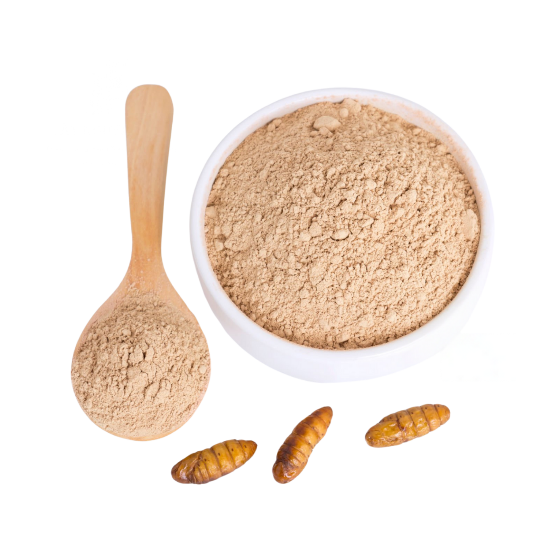 Được nghiền từ tằm sấy khô, giàu protein, ứng dụng trong thực phẩm chức năng, thức ăn chăn nuôi, hoặc làm nguyên liệu mỹ phẩm tự nhiên.