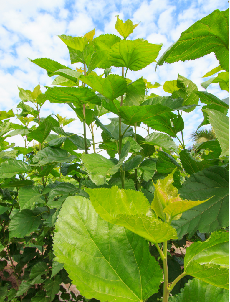 Nguồn thức ăn chính cho tằm, được trồng tự nhiên, không hóa chất, đảm bảo chất lượng và an toàn.