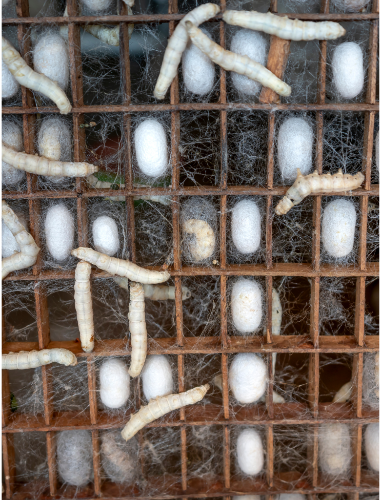 Kén trắng, chắc, đồng đều, nuôi dưỡng trong môi trường sạch. Là nguyên liệu chính để kéo tơ và sản xuất tơ tằm chất lượng.